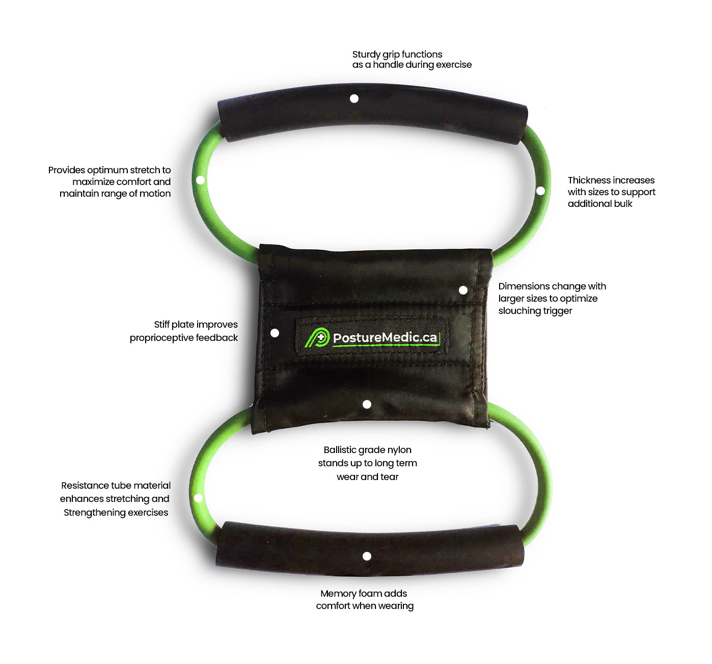 Most posture braces do not improve posture. Instead, they force the body into position, weakening and creating atrophy for the very muscles patients should be strengthening. Posture Medic does the opposite. It works with the body to strengthen and re-train muscles. It creates as a gentle reminder to re-engage the muscles in the neck and thoracic region to correct posture. The Posture Medic can also be used for stretching and strengthening exercises.