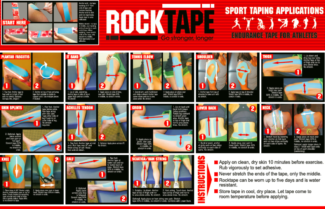 RockTape can be used to treat sports and non-sports injuries, including shin splints, plantar fasciitis, runner’s knee and back pain.