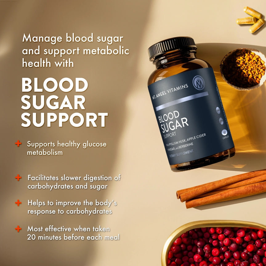 Synergistically balance blood glucose levels and improve overall metabolic health with Blood Sugar Support. Formulated with a blend of powerful ingredients like magnesium, chromium picolinate, psyllium husk, apple cider vinegar and berberine, this product is especially effective when taken before meals.