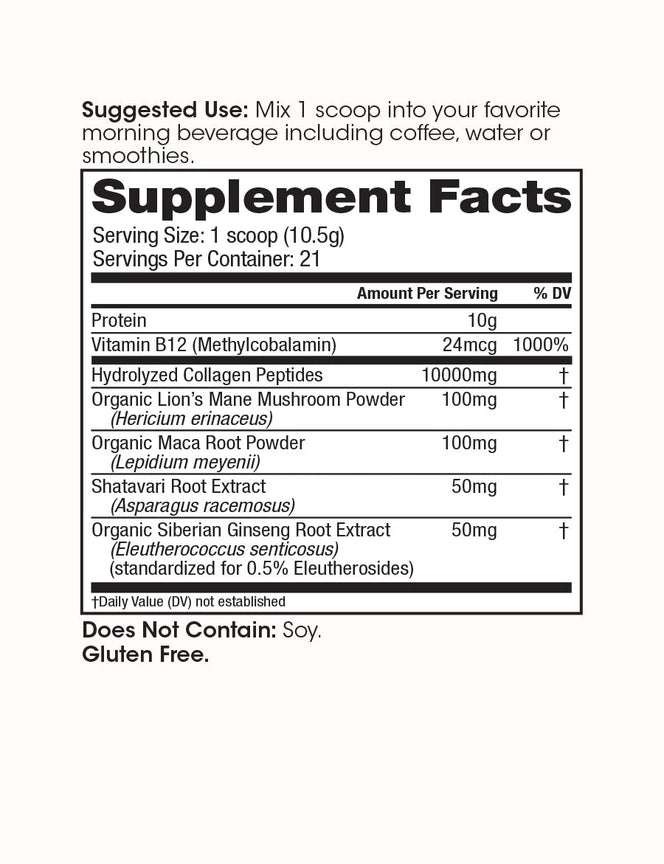 Glow Up AM Collagen Powder combines adaptogens and collagen to help you start your day with added energy and focus.